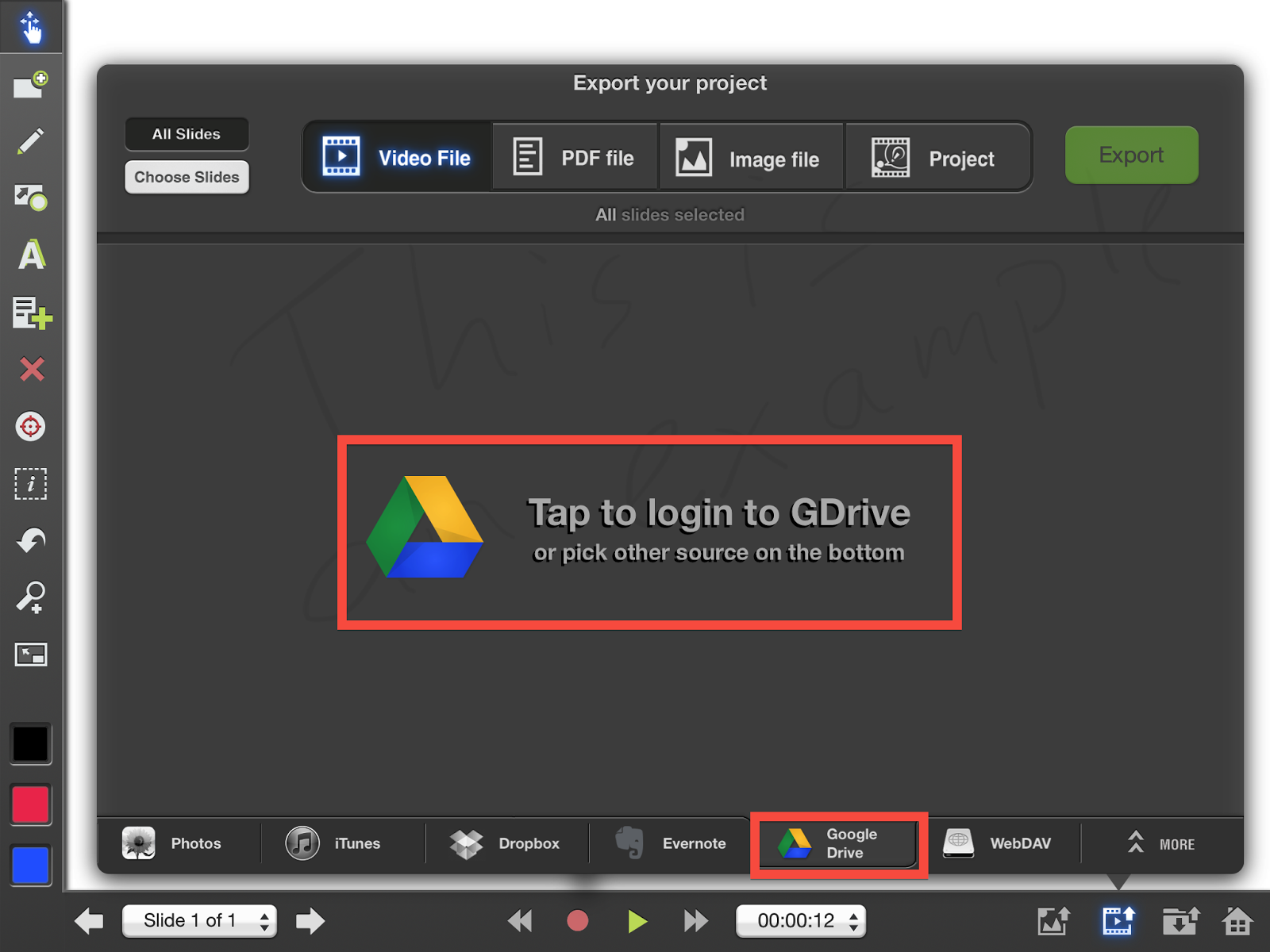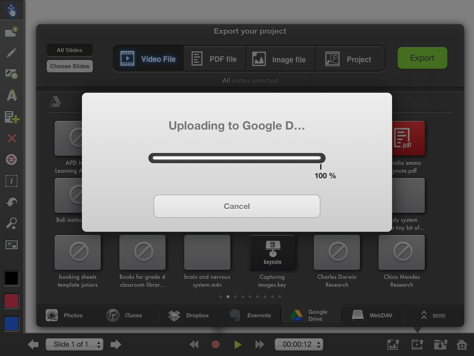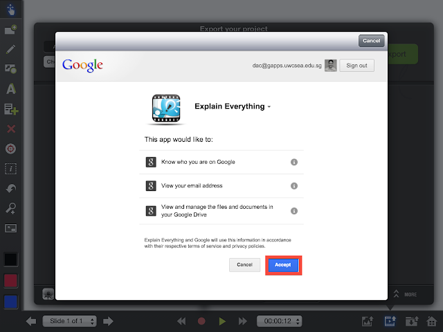 **Note – If you save a project to your drive, and you want to open it back in Explain Everything, you will need to open it from the Google Drive app on the iPad (Not from Explain Everything)