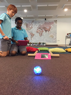The first time the students touched the Spheros, we showed them how to connect to the iPads and then we let them play. We wanted them to inquire into what they could do with the sphero and see what was possible. We decided to use the free Tickle app as it uses drag and drop block code programing to control the Spheros.